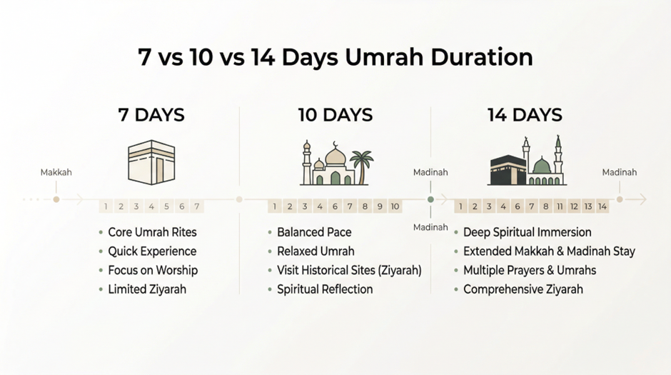 How Long Should You Stay for Umrah? Choosing Between 7, 10, and 14 Days